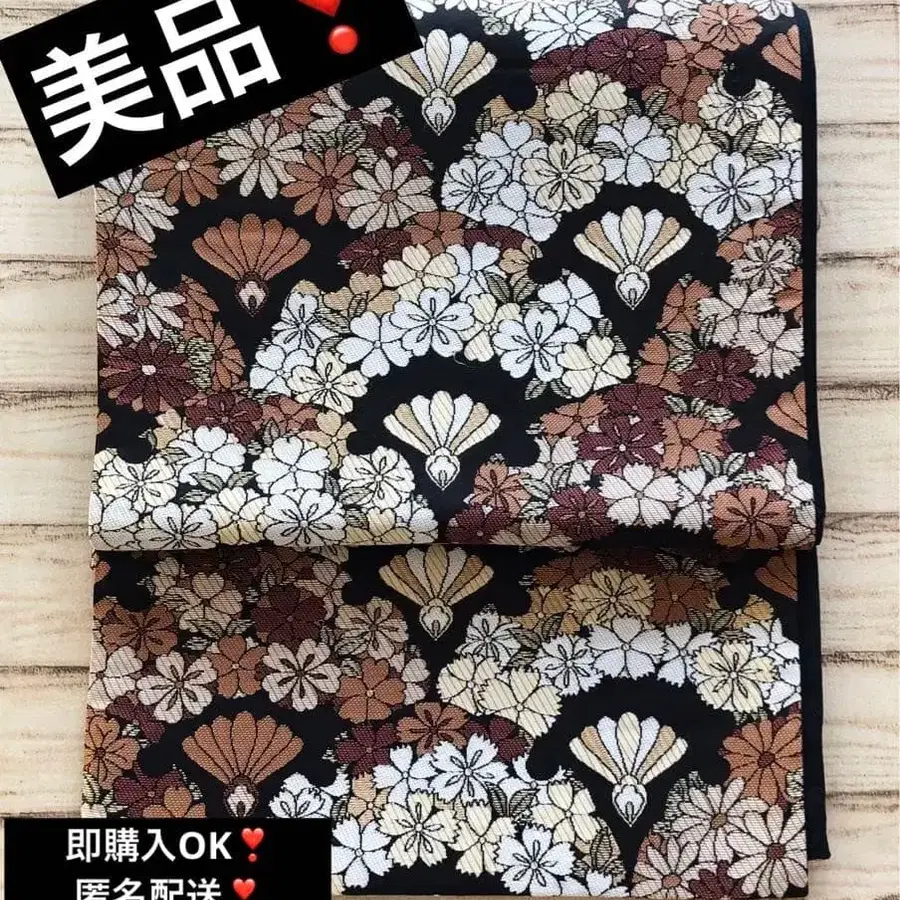 [새상품급] 모던 블랙 베이스 꽃무늬 후쿠로 오비