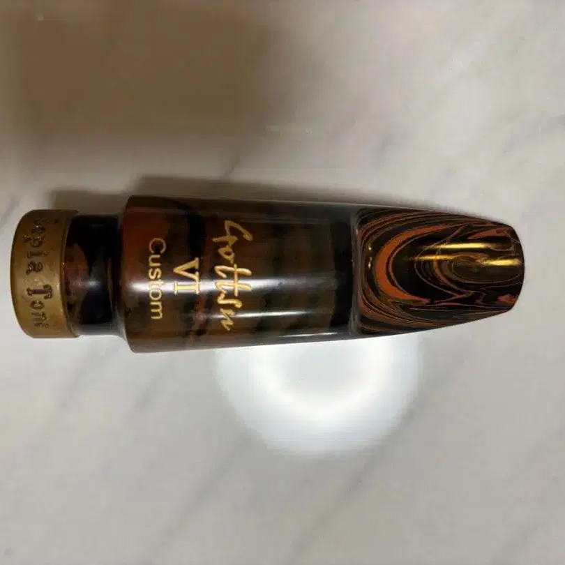 Gottsu 테너 색소폰용 마우스피스 특주품 Sepia Tone VI Custom Marble, 사이즈 105 입니다. 커스텀 모델은 세피아톤(VI)을 기반으로 하이 배플 설계를 적용했습니다. 이 시리즈는 [하드 러버로 메탈적인 엣지와 파워를 얻고 싶다]는 요구에서 개발되었으며, 음색 경향으로 밝고 파워풀하며 윤곽이 또렷하다는 방향성이 강조되었습니다.  또한 테너 모델은 하이 배플이면서도 빅 챔버 설계로 저음이 잘 나오는 장점도 있습니다. 시판점 소개에서도 VI 계열 중에서는 하이 배플의 위치이며, 일반적인 VI보다 밝고 음의 윤곽이 명료하며, 음량과 압출이 용이하다는 평가가 일반적입니다.  본 개체는 마블이며 링은 무니켈 황동 특주 사양입니다 (사진과 같이 재질 특성상의 탁함/색감 변화가 있습니다). 사이즈 105는 너무 열리지 않는 범위에서 파워를 확보하기 쉽고, 리드 선택의 폭도 넓히기 쉬운 번수입니다. ⸻ 상태 사용에 따른 약간의 흠집, 스크래치가 있습니다. 링은 무니켈 황동이므로 탁함/변색이 있습니다. ※ 상태는 사진을 우선해 주세요. ⸻ 사양 • 제조사: Gottsu (고츠) • 모델: Sepia Tone (VI) Custom Marble (테너) • 사이즈: 105 • 배플: 하이 배플 • 링: 황동 (무니켈) ⸻ 마우스피스만 해당됩니다. 중고이므로 NC.NR 부탁드립니다.