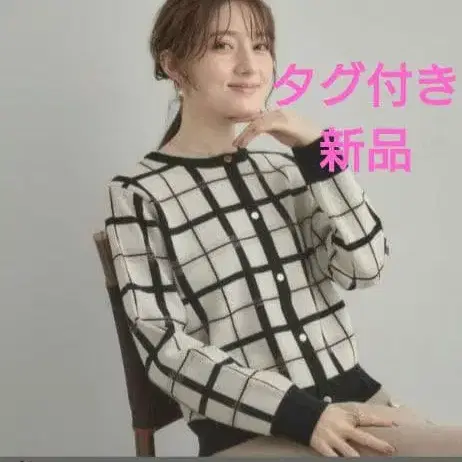 [ 택 포함 새상품 ] 쿠튀르 브로치 체크 자카드 니트 가디건