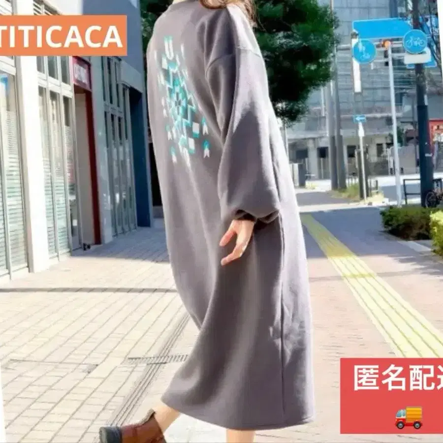 TITICACA 백 프린트 티티카카 속기모 맨투맨 원피스 F