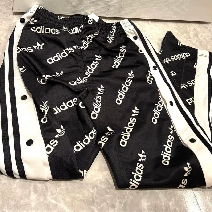 아디다스 블랙 아디 블레이크 올 패턴 스냅 팬츠 저리 하의 여성용 S