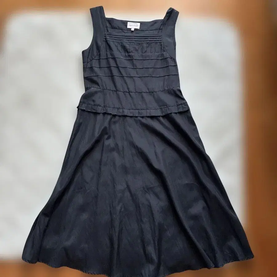 블랙 슬리브리스 무릎 기장 원피스 실크 55%