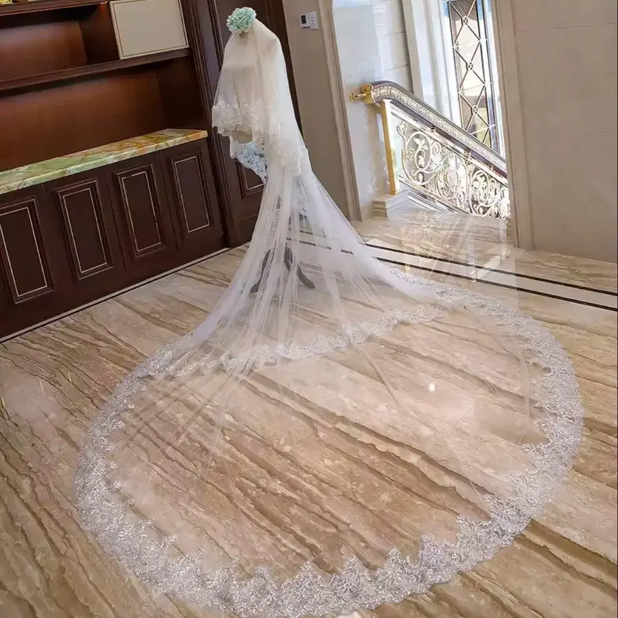 롱 웨딩 베일 레이스 스팽글