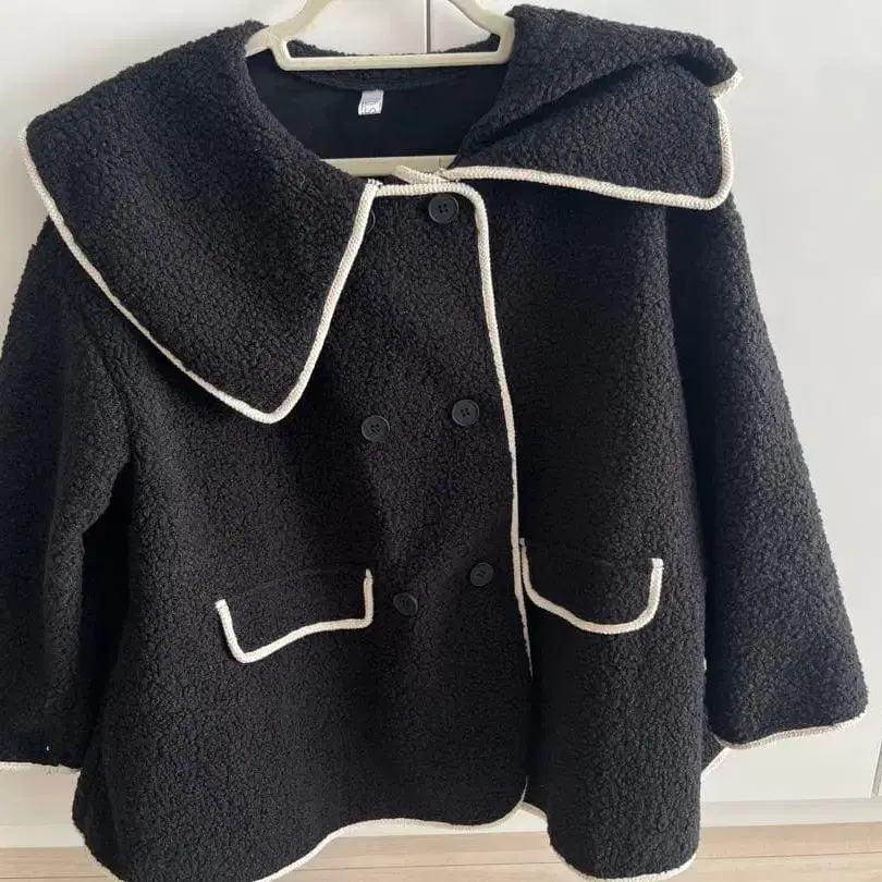 시착만 한 상품 O.S.K 파이핑 보아 코트 자켓 블랙 x 베이지