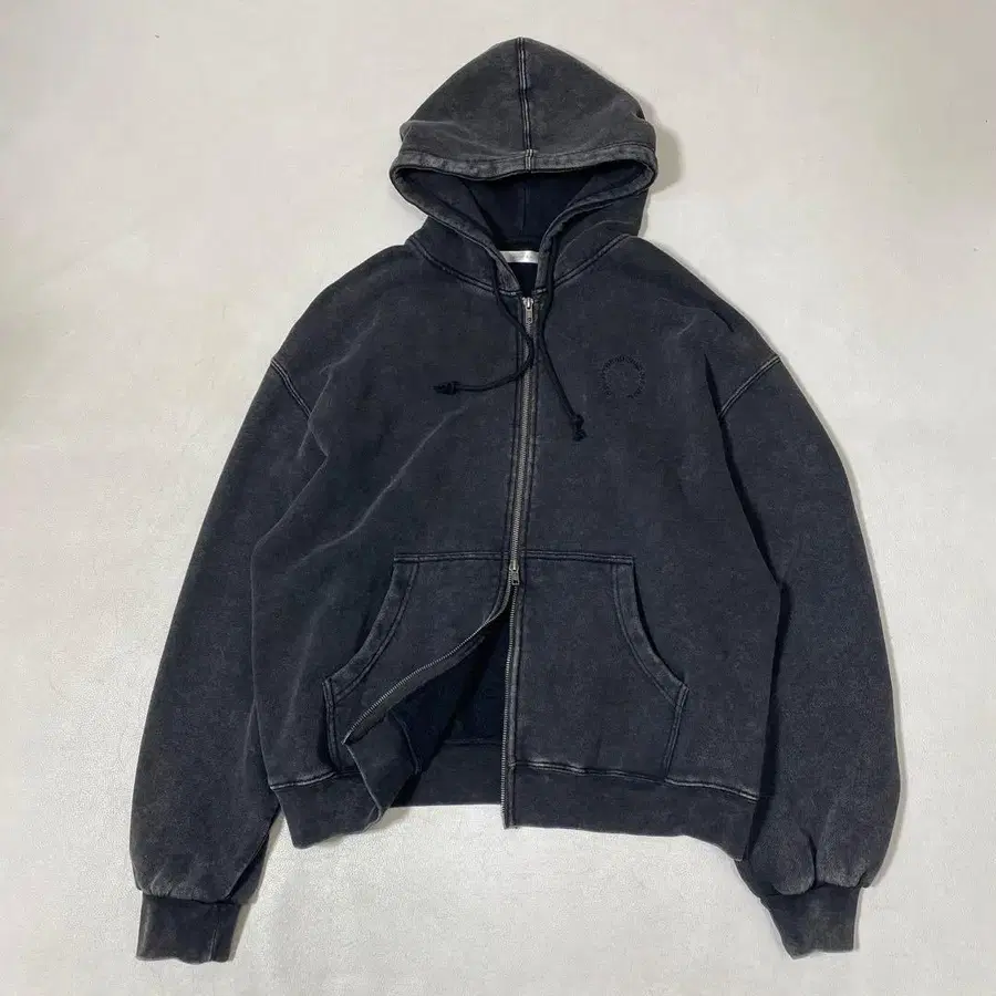Anchor Smith 빈티지 가공 서클 로고 자수 더블 지퍼 후드티