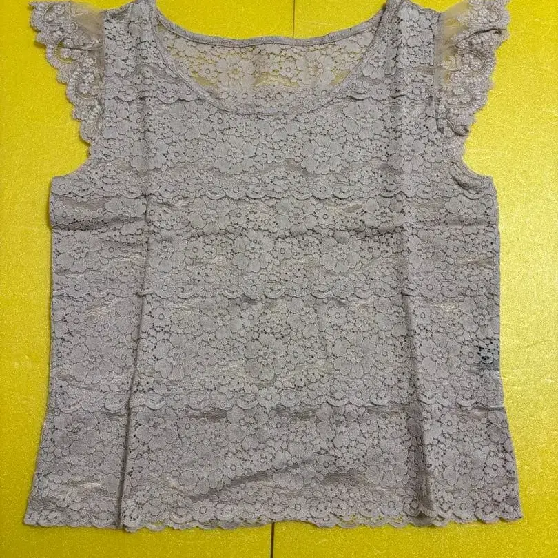 새상품급 장밋빛 인생 장미 레이스 슬리브리스 블라우스 그레이 M 일본제