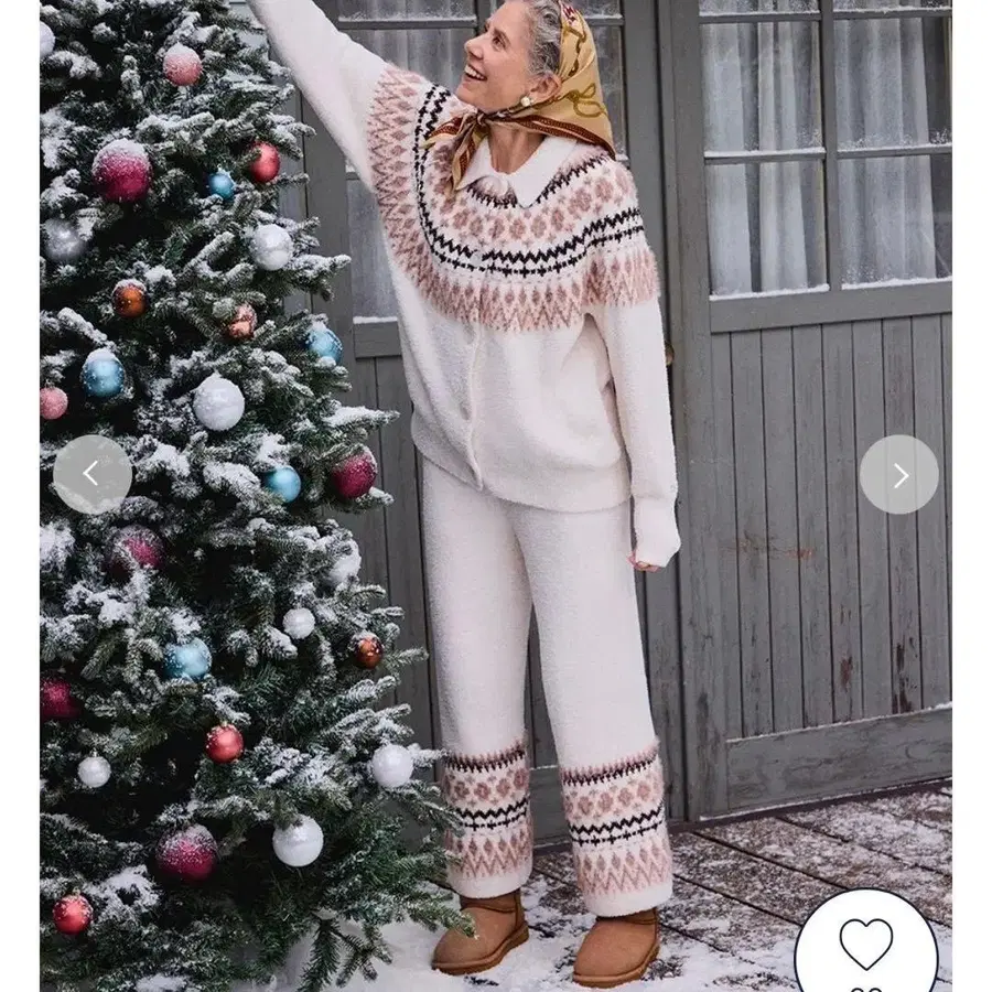 겨울의 방문이 기다려지는, 어른스럽지만 젤라또피케다운 노르딕 무늬 시리즈입니다. 밑단에 눈꽃이나 꽃처럼 보이는 무늬를 담아낸 롱 팬츠. 무늬 부분에 털이 길고 가벼운 페더 니트를 사용하여 따뜻한 느낌을 주었습니다. 냉방병 방지가 되는 하이웨스트 디자인은 하반신을 길어 보이게 하는 기쁜 효과도 있습니다. 왼쪽 허리에는 로고 자수도 있습니다. 색상은 부드러운 아이보리와 그레이 두 가지 색상으로 전개됩니다. 같은 시리즈의 풀오버나 가디건과 코디네이트하여 즐겨보세요.