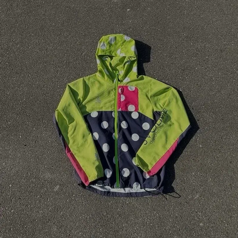 도트 무늬 옐로우 그린 나일론 자켓 핑크