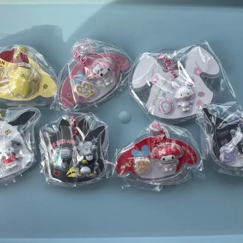 산리오 캐릭터즈 패키지 참 7종 폼폼푸딩 마이멜로디 위시미멜 포차코 배드마츠마루 시크릿 마이멜로디 쿠로미