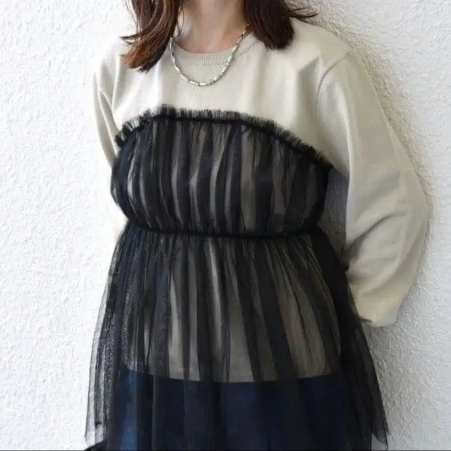방문해 주셔서 감사합니다. 아래는 홈페이지 인용입니다. 소재: 본체: 아크릴 43%, 폴리에스테르 36%, 코튼 21%, 별도 천: 폴리에스테르 100% ■ 디자인 맨투맨 느낌의 니트에, 시어한 느낌이 지금 기분에 딱 맞는 튤 소재를 뷔스티에처럼 도킹한 풀오버입니다. 힙에 걸쳐지는 기장감으로 봉긋하게 퍼지는 실루엣. 니트 부분은 짧은 기장이므로, 하의에 레이어드했을 때 튤이 비쳐 귀엽습니다. ■ 소재 맨투맨 감각으로 입으실 수 있는 약간 쫀득한 니트입니다. 집에서 세탁이 가능합니다. ■ 코디네이트 데님 x 튤의 스테디셀러 스타일로 캐주얼하게, 블랙 스커트로 맞추면 시크한 인상으로 ◎ ------------------------------------- 원단 두께: 중간 신축성: 있음 비침: 튤 부분 있음 광택감: 없음 물세탁: 가능 ------------------------------------- 사이즈는 사진을 확인해 주세요 m(_ _)m 잘 부탁드립니다.