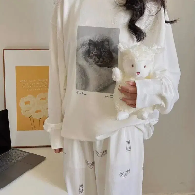 젤라또피케 Kotoka Izumi 고양이 패턴 상하의 세트 고양이 프린트