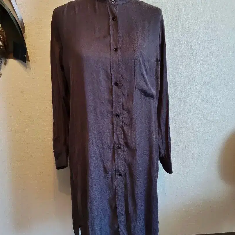 페이즐리 무늬 퍼플 긴팔 셔츠 원피스