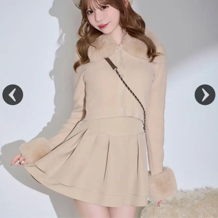 michellMacaron 퍼 칼라 니트 가디건 베이지
