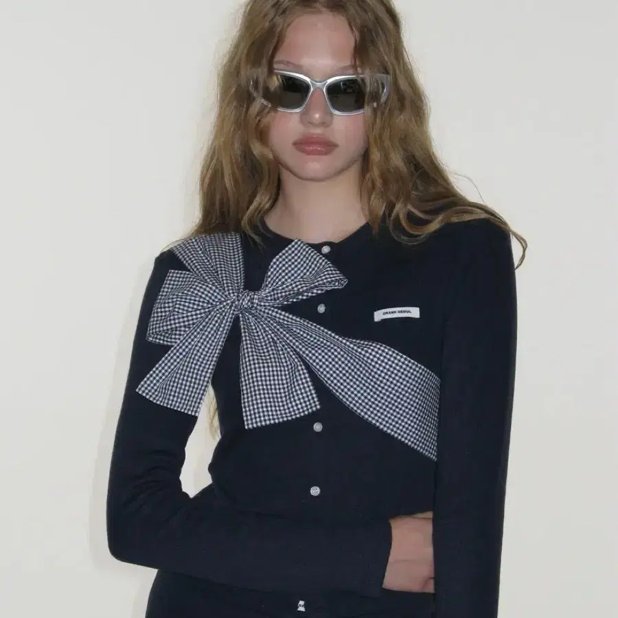 [ 새상품 ] CRANK 리본 니트 가디건 네이비