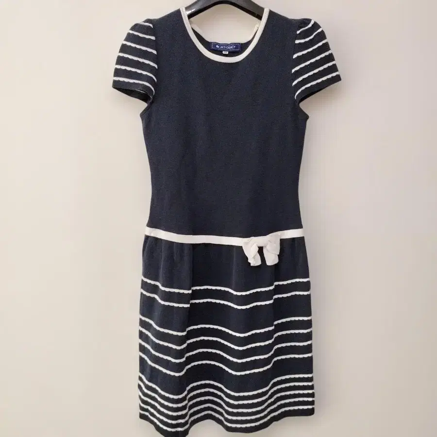 M'S GRACY 반팔 니트 원피스 보더 리본 네이비 화이트 M