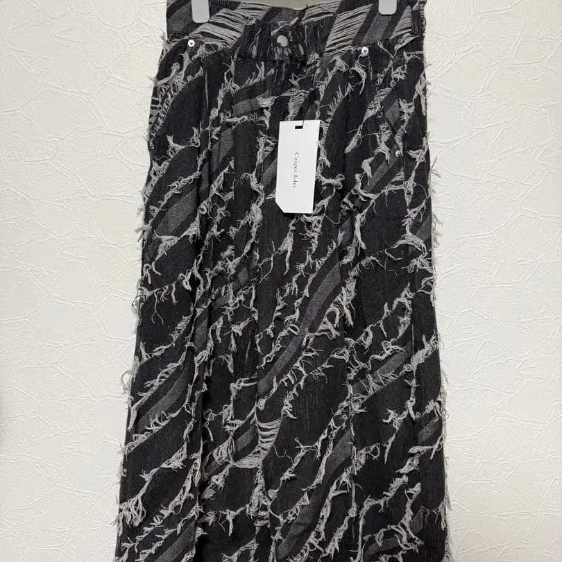 프린지 가공 블랙 앤 화이트 스트라이프 와이드 팬츠