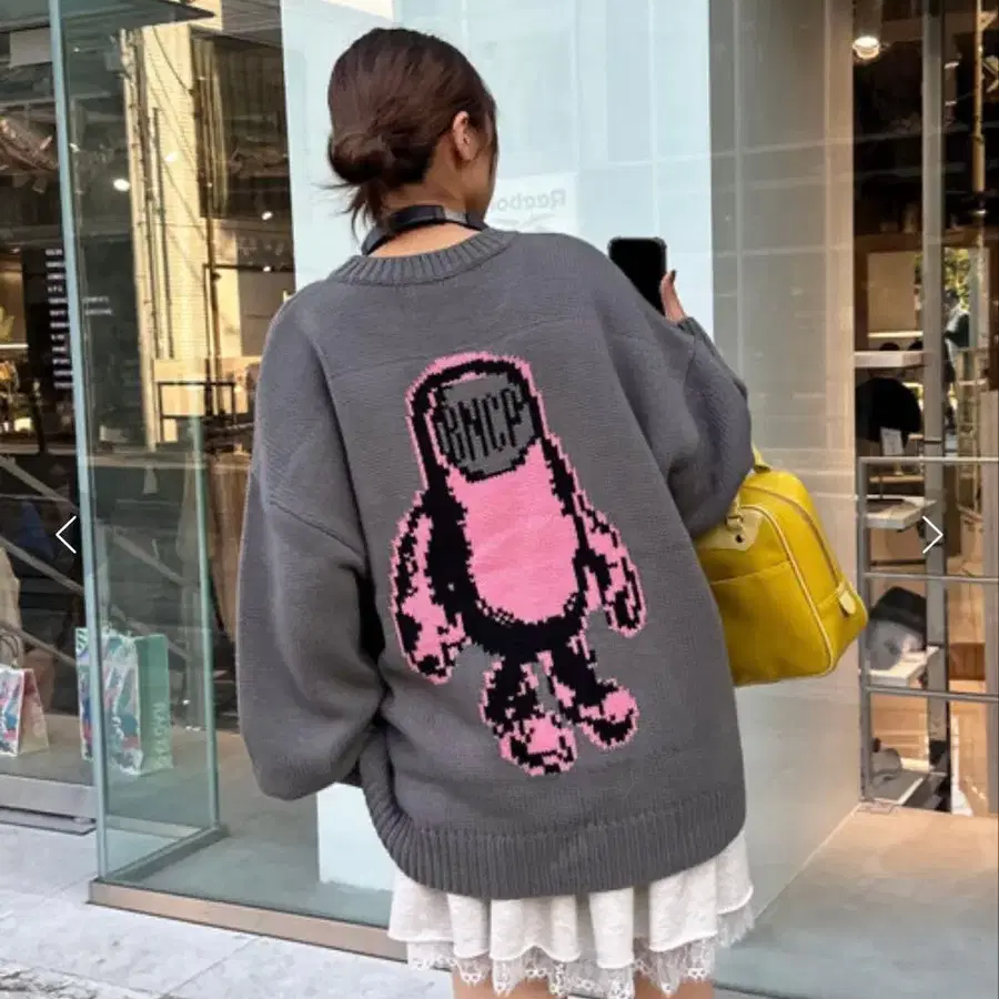 자동 번역되었어요. 원문보기뒷면에 몬스터 디자인이 들어간 그레이 니트.