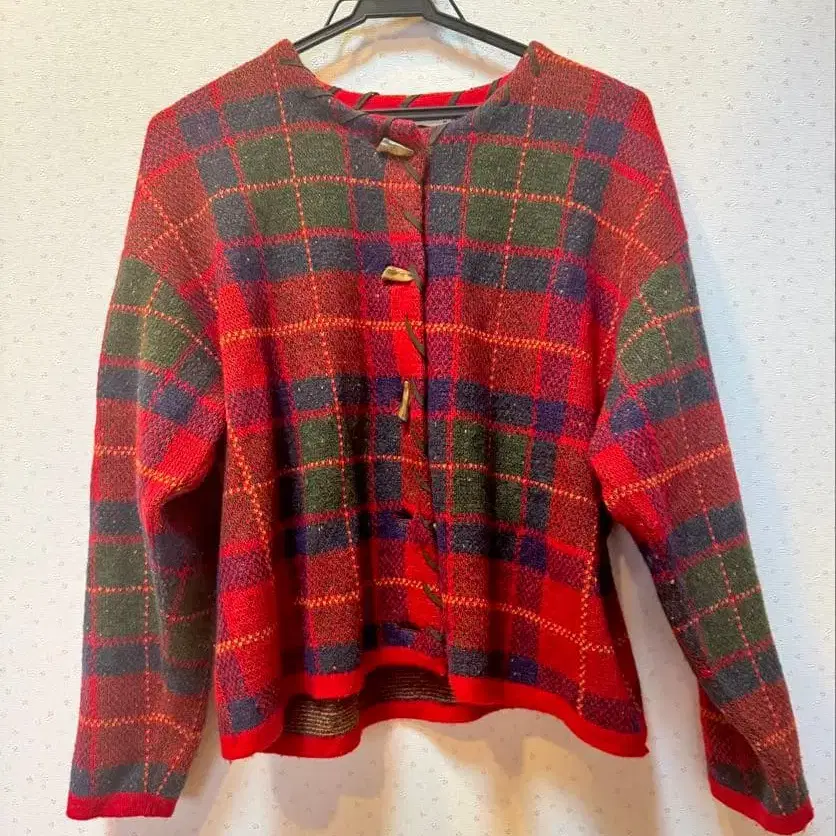 레어 디자인 Saint Joie 체크 무늬 니트 가디건 레트로