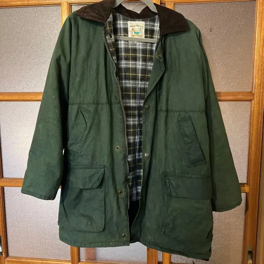 자동 번역되었어요. 원문보기코튼 소재의 그린 자켓, 체크 무늬 안감 부착, 사용감 있음.