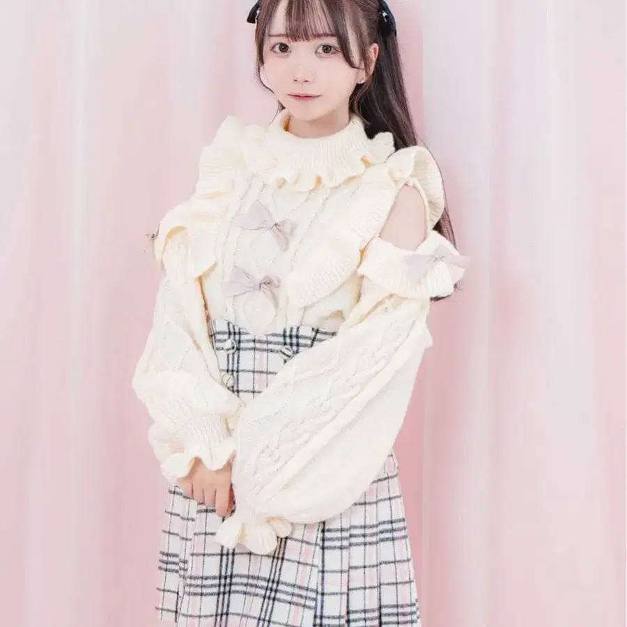 Honey Cinnamon 포인트 리본 어깨 트임 몰 니트