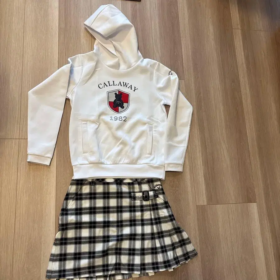 CALLAWAY 후드 부착 긴팔과 체크 무늬 스커트