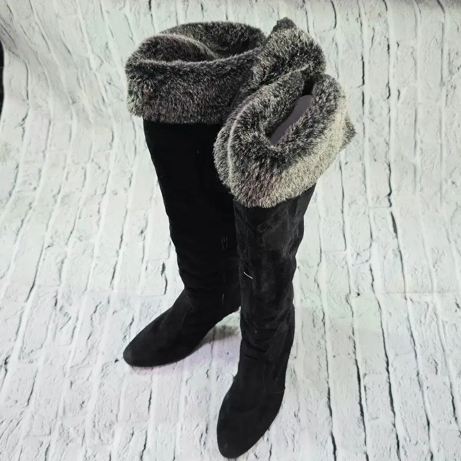 퍼 달린 블랙 스웨이드 오버니 부츠
