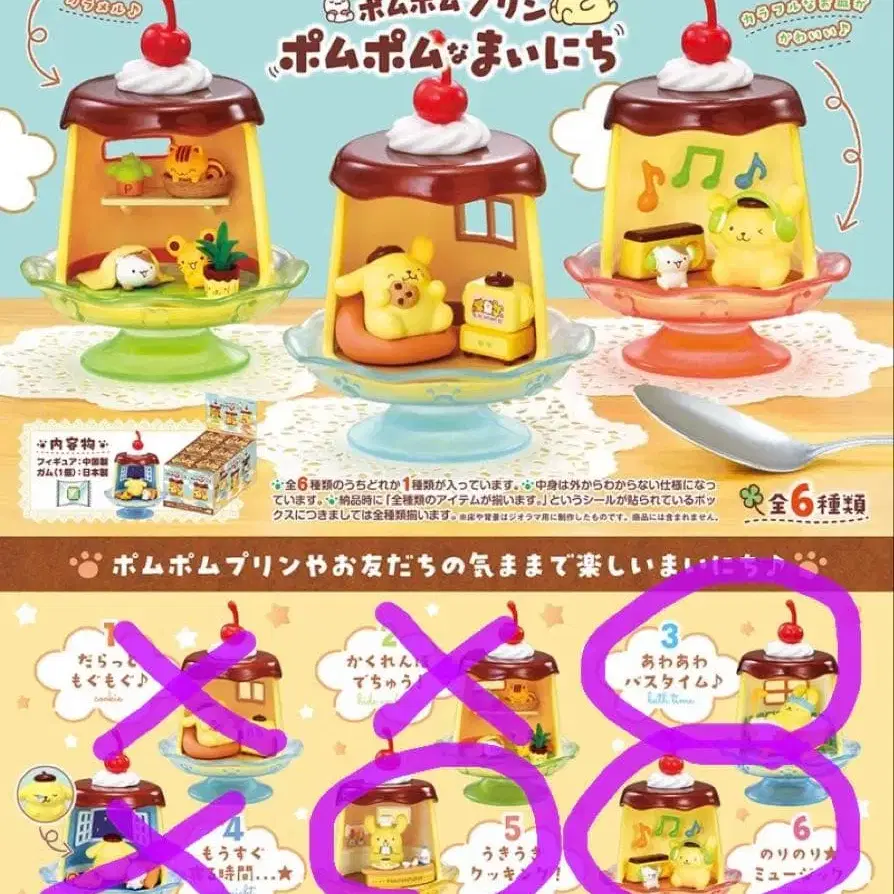 폼폼푸딩 피규어 3, 5, 6번 3개 세트 내용 확인을 위해 외부 박스는 개봉했습니다.