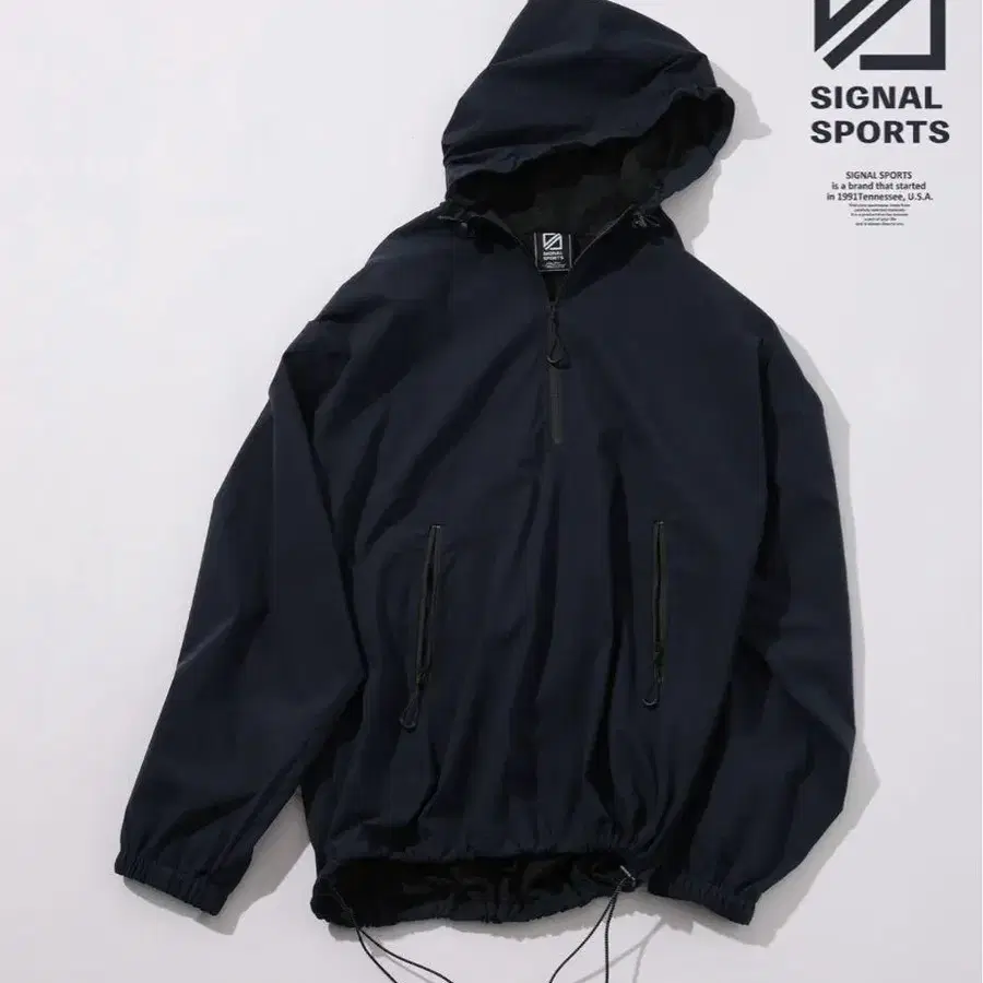 어딘가 모드감이 있는, 모노톤의 나일론 소재로 제작한 아노락 후드티