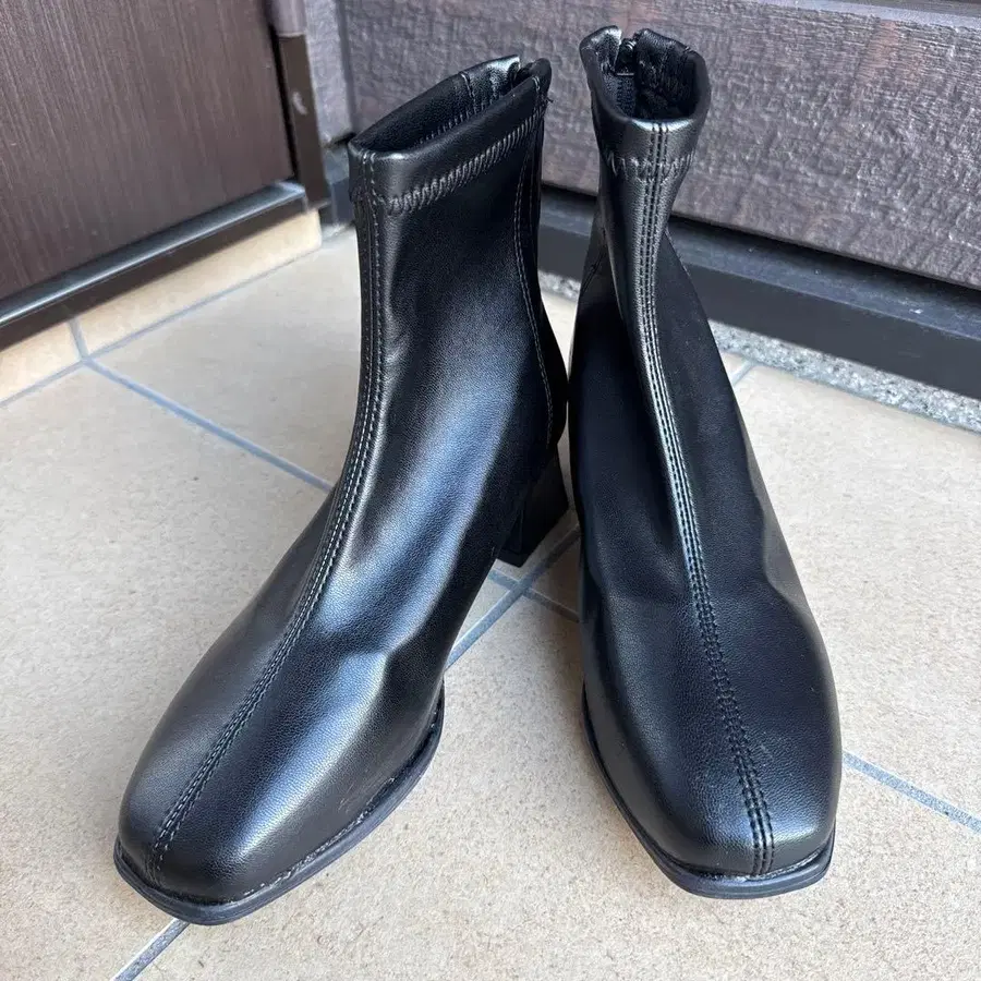 블랙 합성 피혁 지퍼 달린 숏부츠