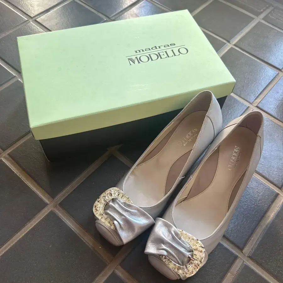 [ 새상품 ] MADRAS MODELLO 실버 장식 펌프스