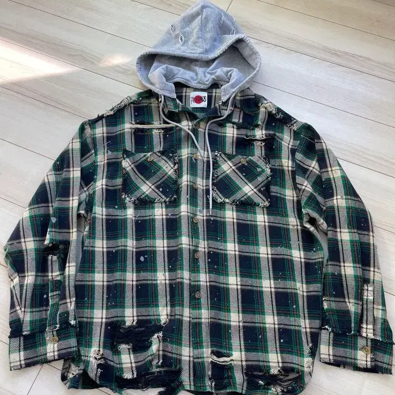 Friends 로얄 플래시 데미지 플란넬 셔츠 그린 계열 체크