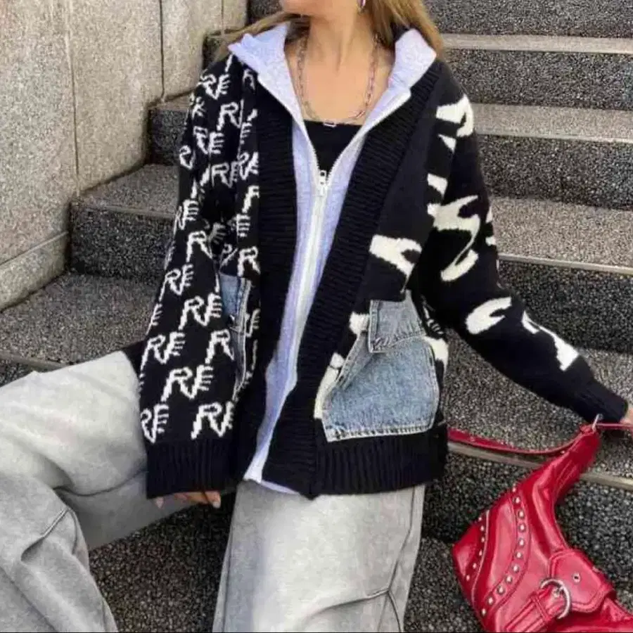 [non-hedge] 앙상블풍 데님 포켓 니트 가디건 블랙