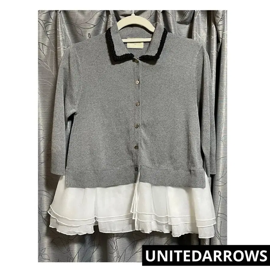 최저가 워셔블 UNITED ARROWS 이소재 콤비 페플럼 가디건