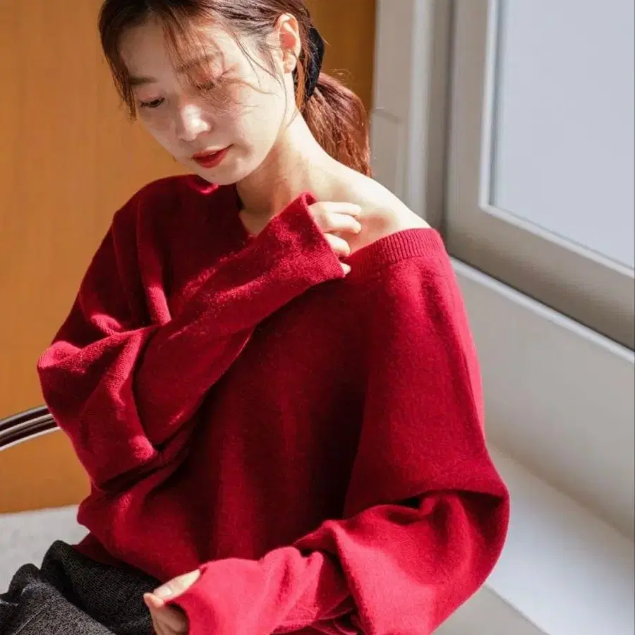 Kastane 멜란지 롱 리브 니트 레드