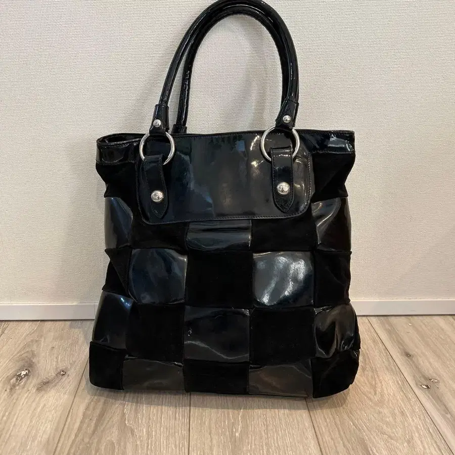 존 그레이 블랙 에나멜 체크 무늬 핸드백