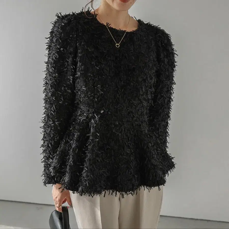 [ 새상품 ] AMELY 페플럼 트위드 프린지 상의 긴팔