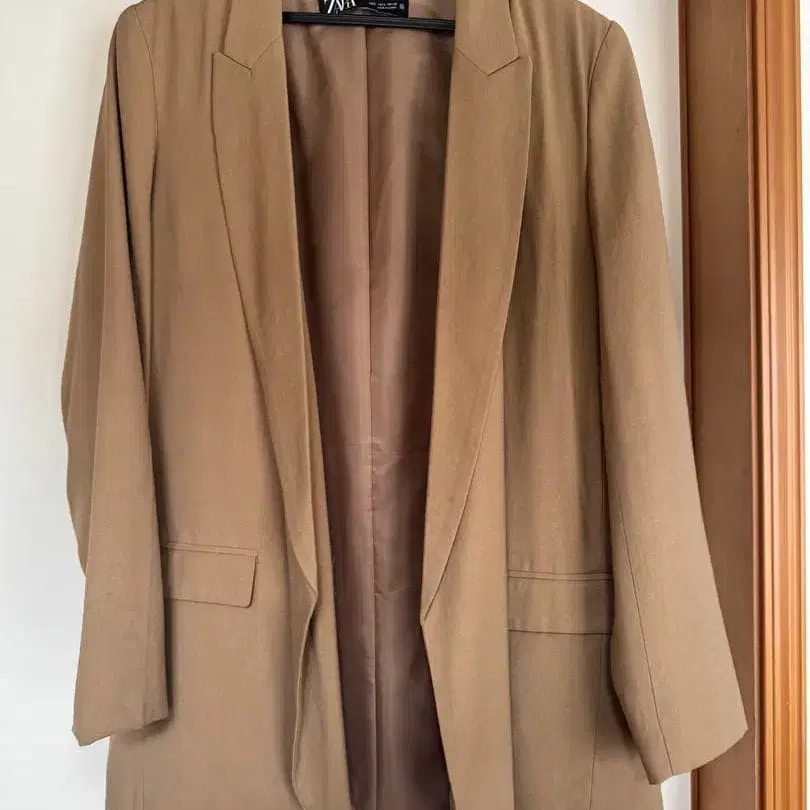 레이온 혼방 테일러드 블레이저 재킷 카멜 베이지