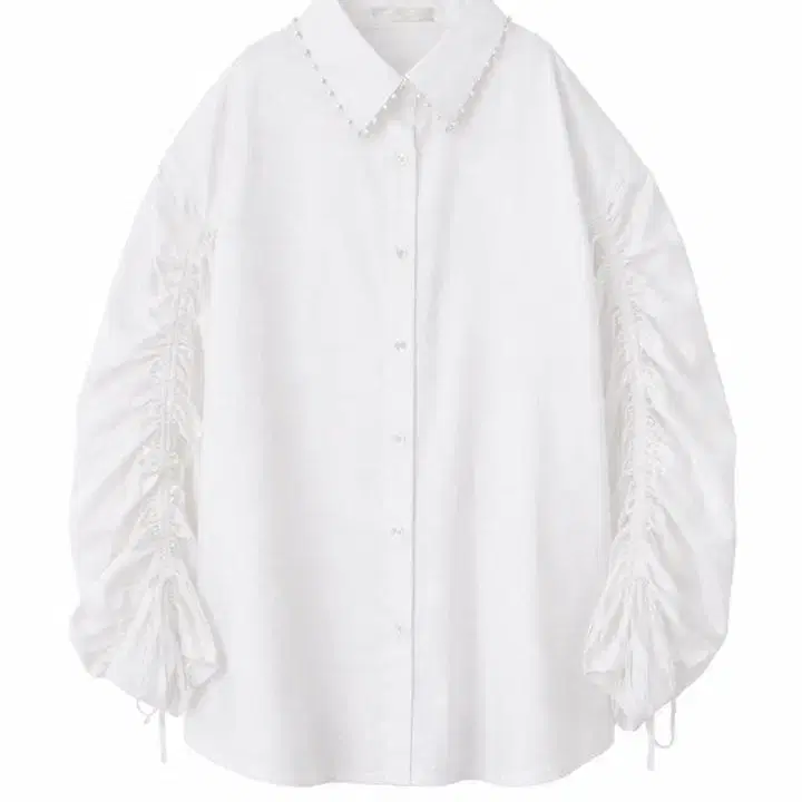 화이트 프릴 옷깃 벌룬 슬리브 셔츠 펄 컬러 셔츠