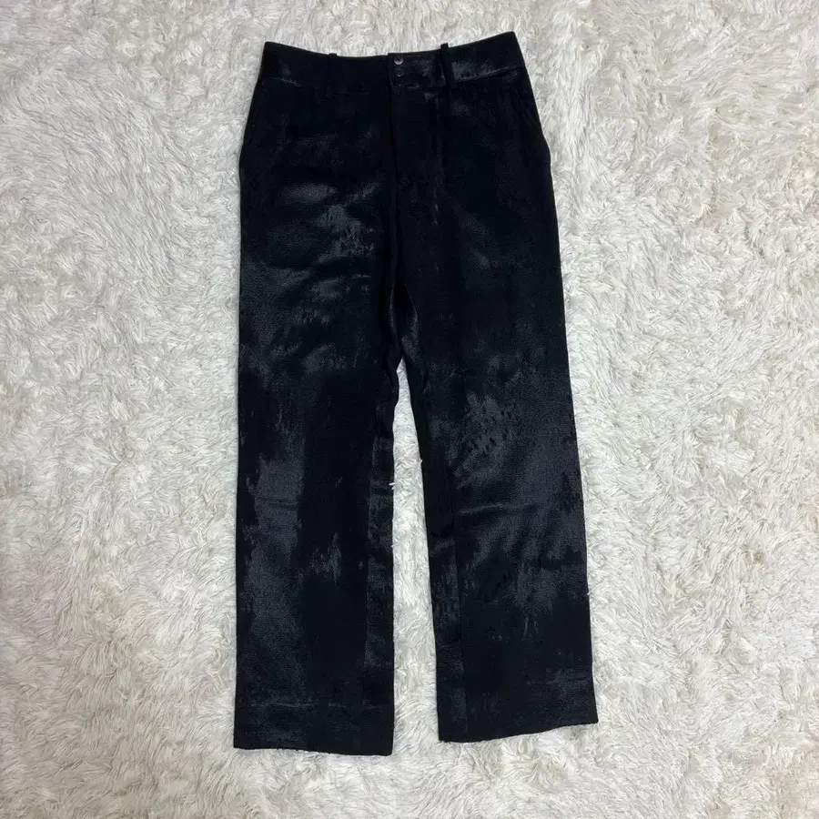 Jean Paul Gaultier의 슬랙스입니다. 소재는 모 60%, 레이온 40%입니다. 사이즈는 48입니다. 너무 굵지도, 너무 가늘지도 않은 실루엣으로 매우 사용하기 쉬울 것 같습니다. 색상은 블랙입니다. 새틴과 같은 광택감이 있습니다. 상태는 이미지로 판단해 주세요. 허리 36cm 힙 폭 46cm 밑위 31cm 인심 69cm 밑단 폭 21cm