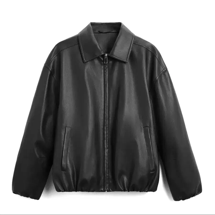 자동 번역되었어요. 원문보기지퍼가 달린 블랙 페이크 레더 자켓. 카라가 있어 스타일리시한 디자인.