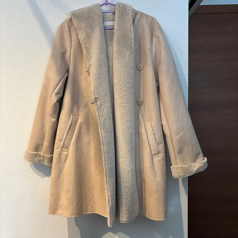 [새상품] CECIL Mc BEE 베이지 무스탕풍 후드 부착 코트