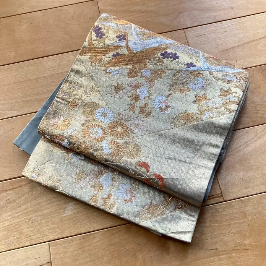 후쿠로 오비 골드 컬러 학과 꽃무늬 자수