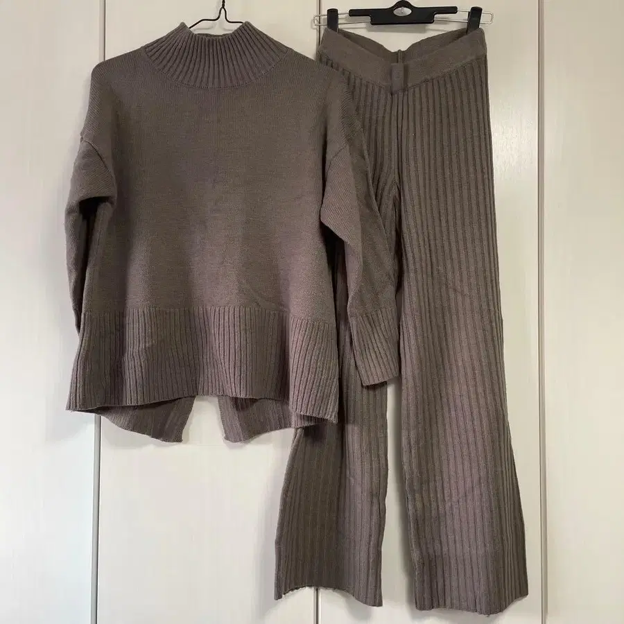 브라운 터틀넥 니트 셋업