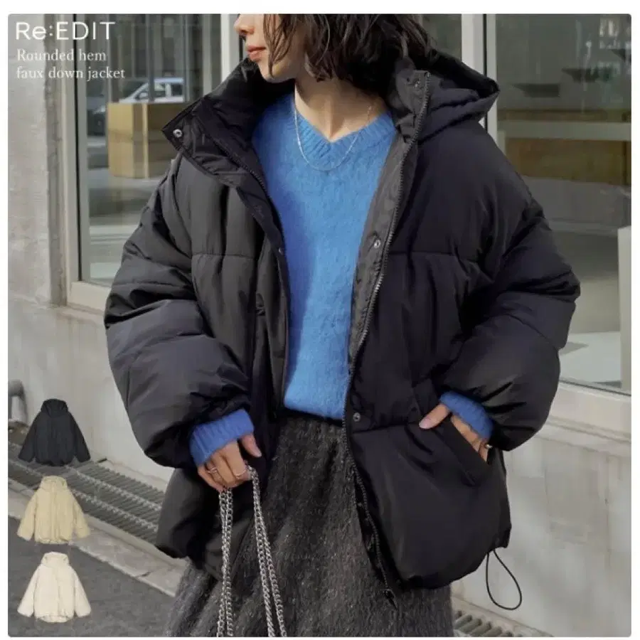 Re:EDIT 블랙 페이크 다운 자켓 M