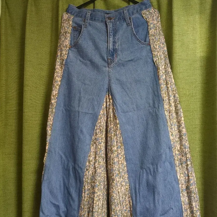 RNAMEDIA 데님 꽃무늬 와이드 레그 팬츠