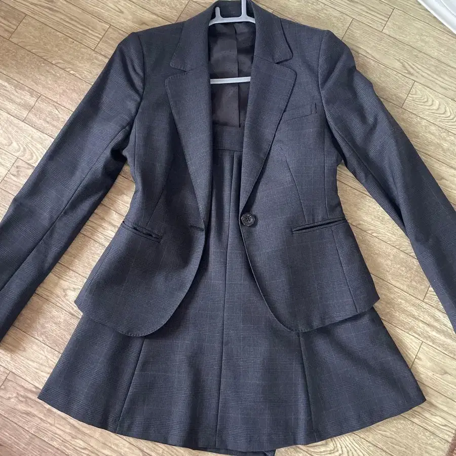 아오야마 Precious 그레이 체크 무늬 스커트 수트 5호 스트레치