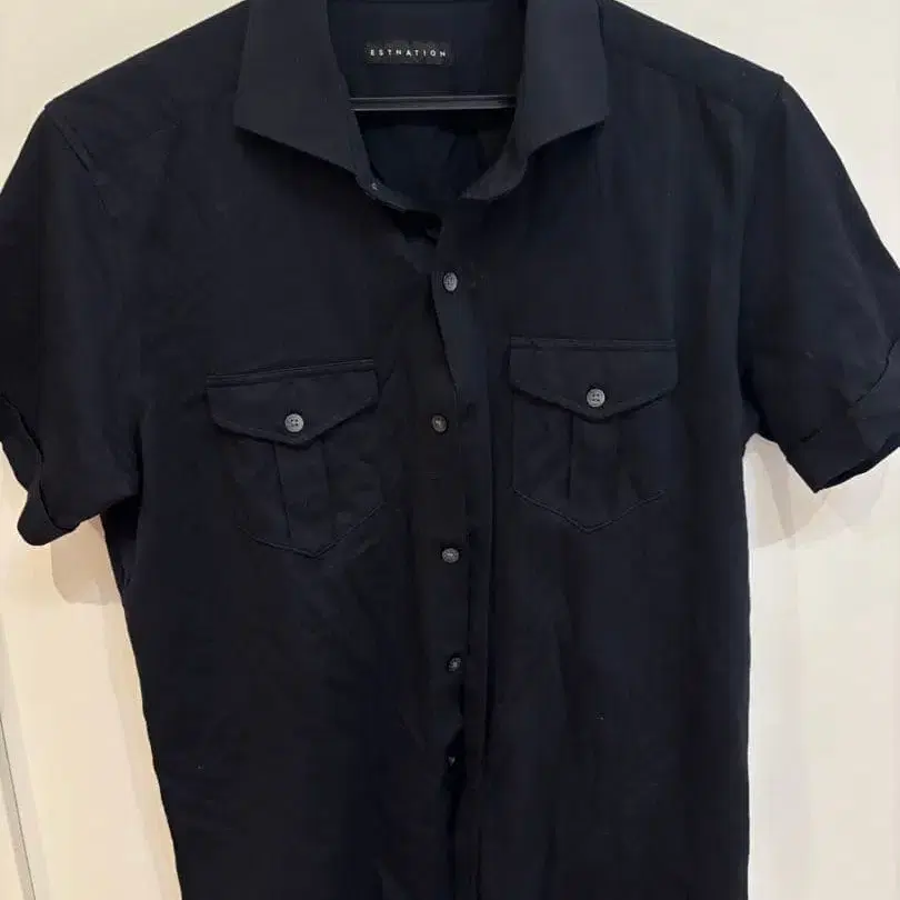 ESTNATION 블랙 숏 슬리브 피케 셔츠 L