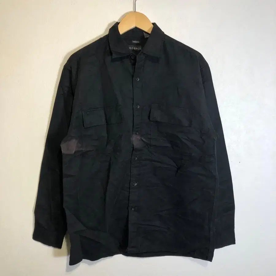 자동 번역되었어요. 원문보기블랙 스웨이드 소재에 앞면에 2개의 포켓이 달린 긴팔 셔츠.