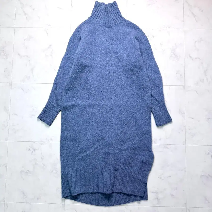 투모로우랜드 캐시미어 혼방 하이넥 니트 롱 원피스 블루