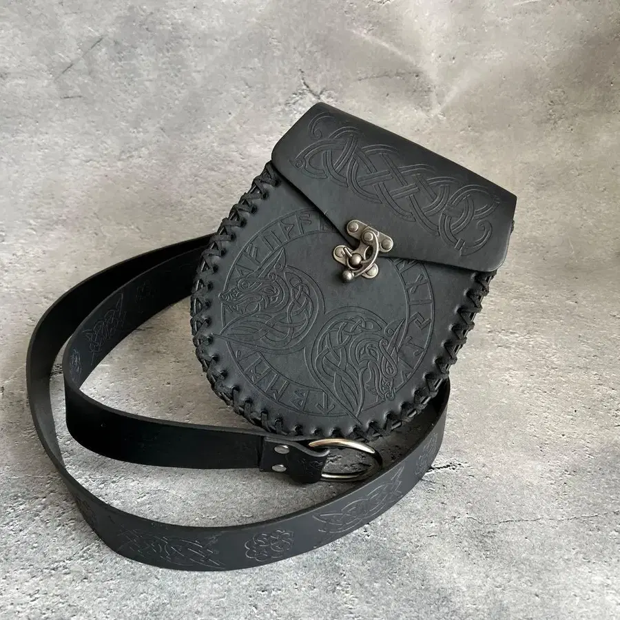 블랙 가죽 바디백 웨스트 파우치